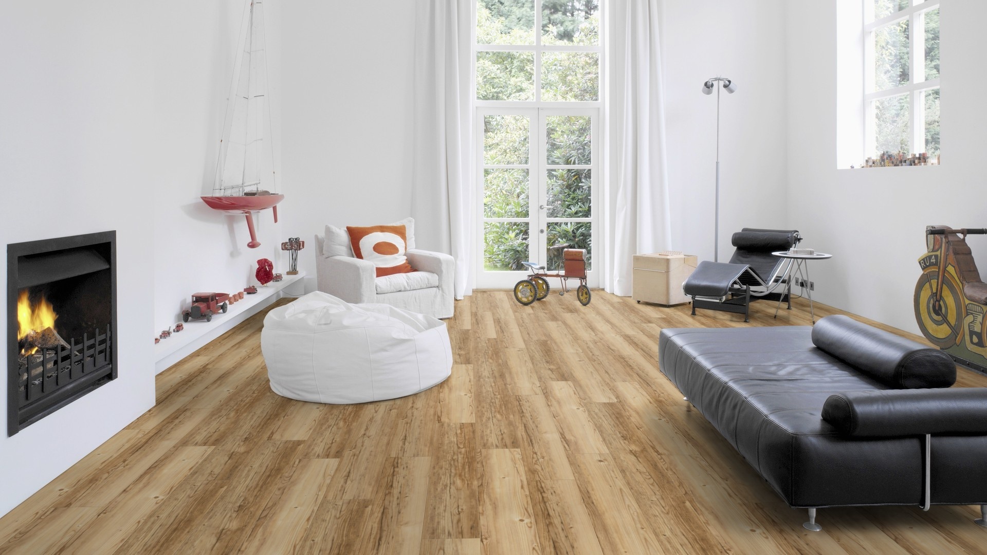 Gulvet består af massiv kork og er derfor meget isolerende.