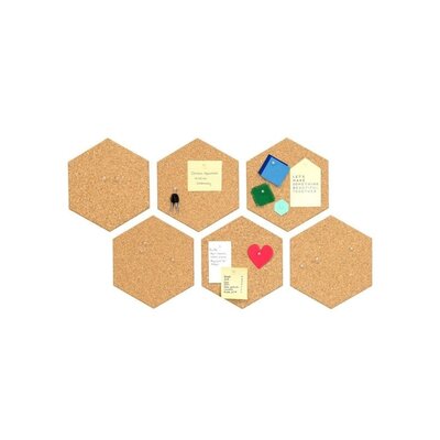 Hexagon korkplader Naturel 30x30 cm – 8 mm tykke opslagstavler i pakke med 6 stk. inkl. monteringstape
