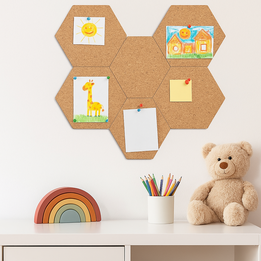 ✅ Pakke med 6 hexagonformede korkplader á 30x30 cm