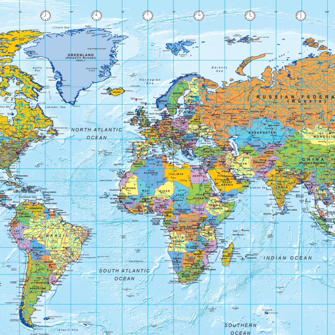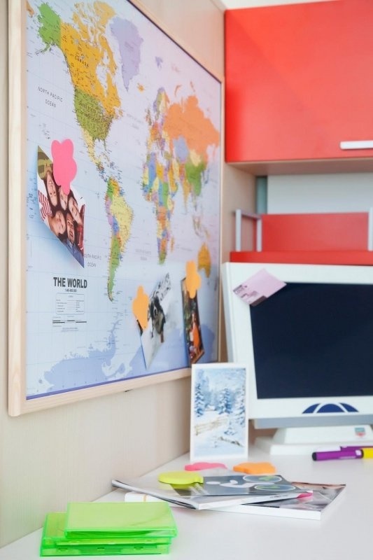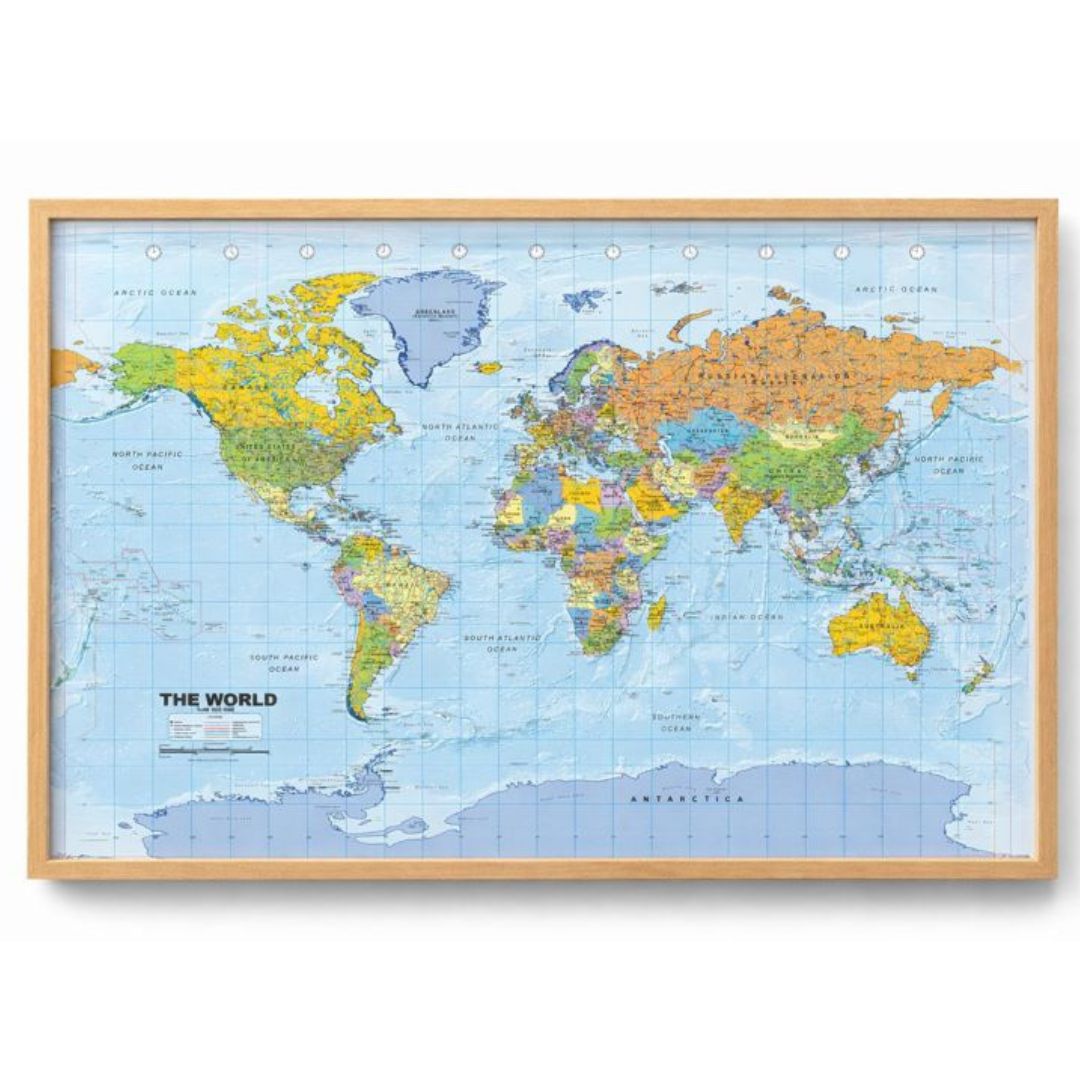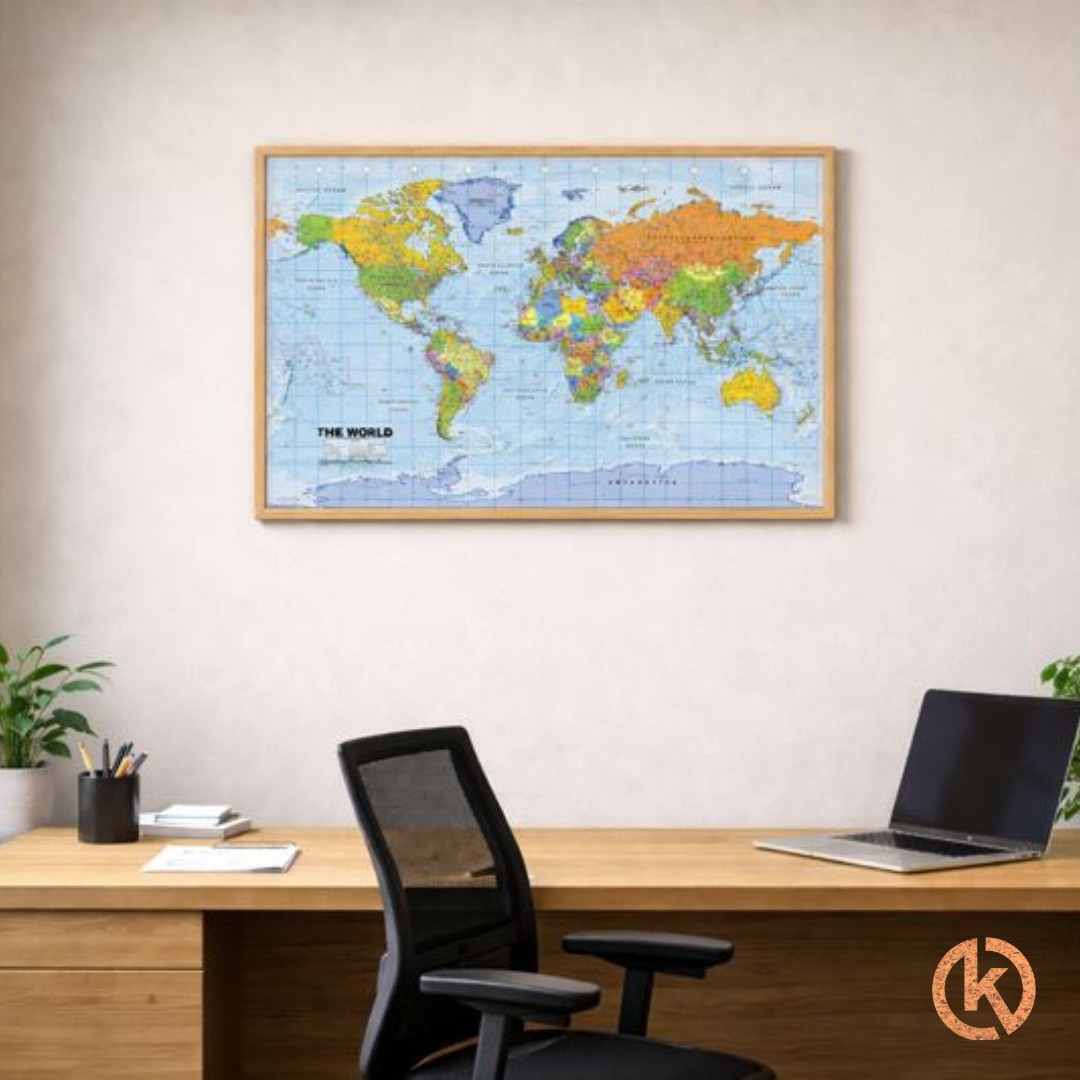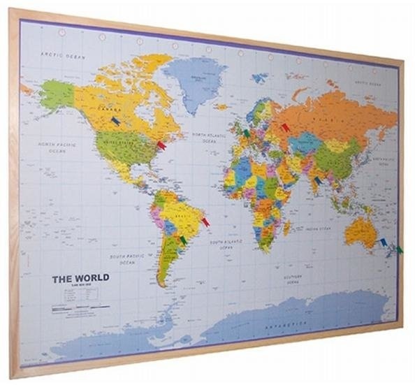 * Smukt færdiggjort verdenskort opslagstavle med træramme