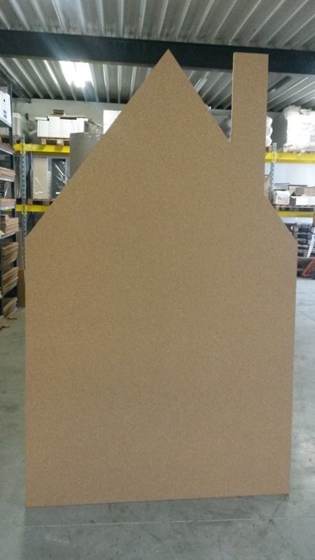 Opslagstavle i kork - specialdesignet - Hus 9mm Krydsfiner & 6mm kork med skorsten