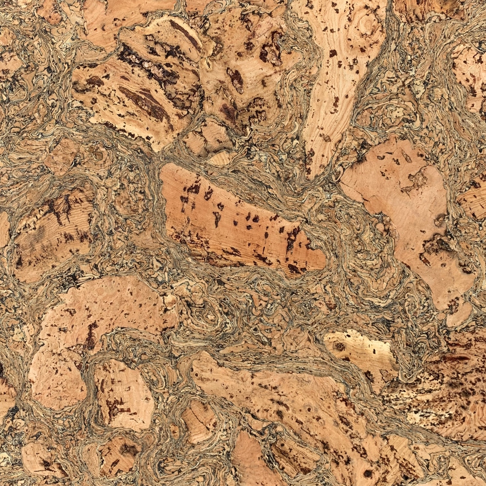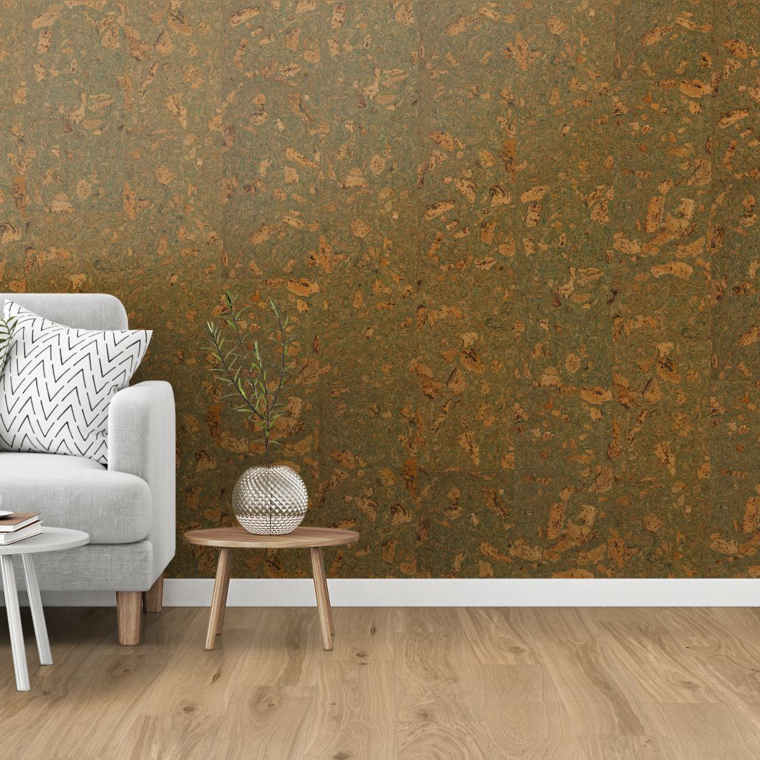 Vægkork ‘Twist Green’ – Korkplade med bølgende mønster og grønne accenter – 60 x 30 cm – Vokset - Pr. m²